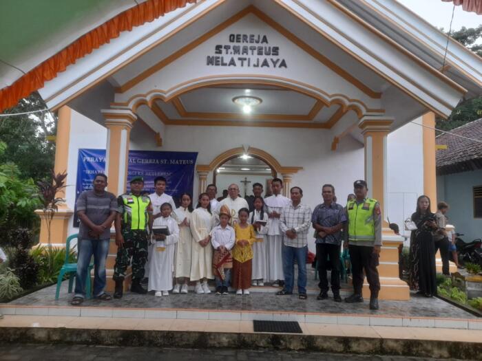 SIJABERITA, OKUTIMUR – Kapolsek Semendawai Suku III IPDA Toni Aji SH MH melalui anggota lakukan pengamanan perayaan Natal di Gereja Santo Mateus Desa Melati Jaya Kecamatan Semendawai Timur.