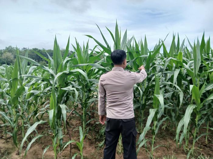 AIPDA FARYADIN memantau langsung perkembangan tanaman jagung dan memastikan bahwa kegiatan ini dapat