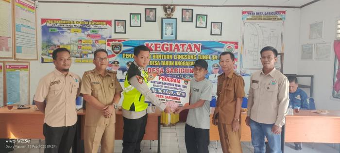 SIJABERITA , OKUTIMUR – Anggota Polsek Belitang II hadiri kegiatan penyerahan Bantuan Langsung Tunai (BLT) Dana Desa (APBN) Tahap I di Desa Sariguna, Kecamatan Belitang Mulya.
