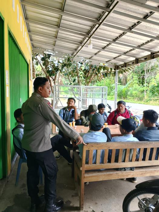 SIJABERITA , OKUTIMUR – Anggota Polsek Semendawai Suku III, Bripda Yoga Pratama, memberikan himbauan kepada pelajar untuk tidak melakukan hal-hal negatif di bulan Ramadhan, seperti kegiatan tawuran.
