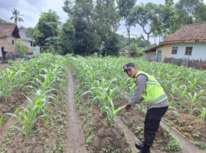 SIJABERITA , OKUTIMUR – Anggota Bhabinkamtibmas Polsek Belitang II, Brigpol Candra Pradana, melaksanakan giat pengecekan lahan pekarangan di Desa Tegal Sari Kecamatan Belitang II, dalam rangka mendukung Program Ketahanan Pangan.