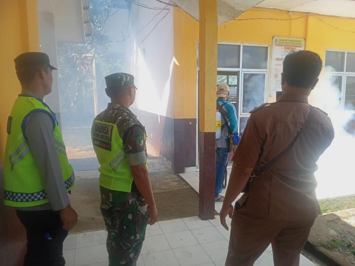 SIJABERITA , OKUTIMUR – Bhabinkamtibmas Polsek Belitang II, Aipda Hendro Saputro, melaksanakan kegiatan Fogging di Desa Sumber Harapan Kecamatan Belitang II, dalam rangka pencegahan penyakit Aids, tuberkulosis, malaria, dan DBD.