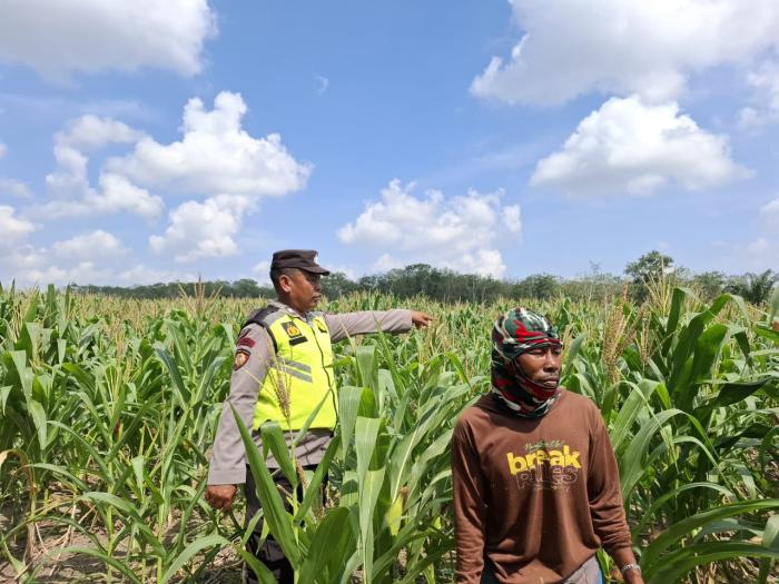 Pengecekan lahan milik Darman, yang memiliki luas 450 m² dan di tanami dengan jagung sebanyak 750 batang.