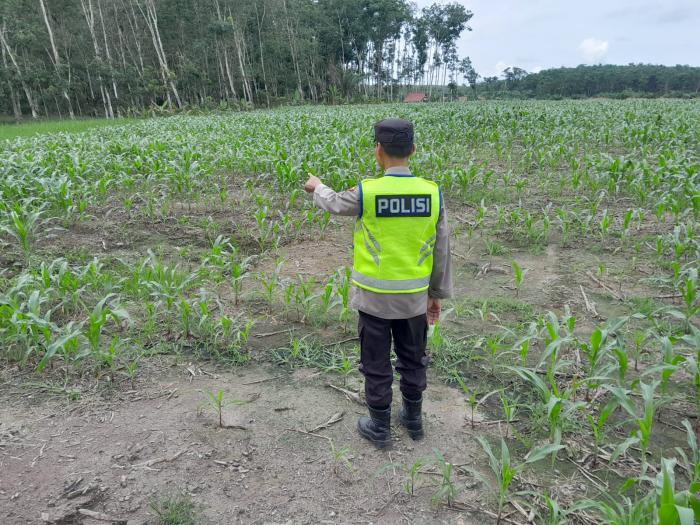 SIJABERITA , OKUTIMUR – Aipda Bedy Ibrahim Putra, anggota Polsek Belitang II, melaksanakan kegiatan pengecekan ketahanan pangan tanaman jagung di Desa Mulyasari, Kecamatan Belitang Mulya, Kabupaten OKU Timur.