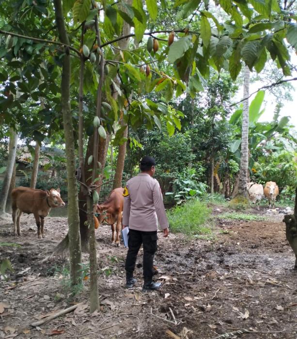 SIJABERITA, OKUTIMUR – Aipda Agus Riyanto, anggota Polsek Semendawai Suku III, melakukan pengecekan ketersediaan sapi di wilayahnya dalam rangka persiapan Hari Raya Idhul Adha.