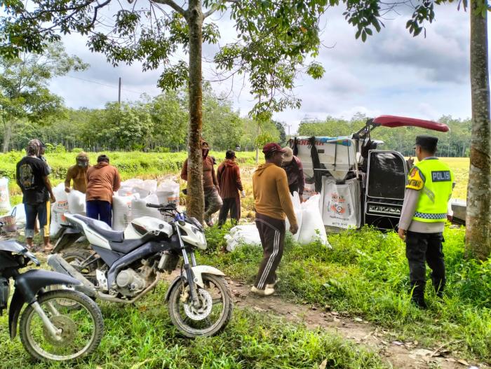 SIJABERITA, OKUTIMUR – AIPDA Agus Riyanto, anggota Polsek Semendawai Suku III, melakukan pemantauan panen padi di wilayah hukum Polsek Semendawai Suku III.