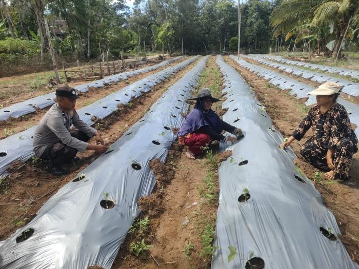 SIJABERITA, OKUTIMUR – Aipda Hendro S, Bhabinkamtibmas Polsek Belitang II, melaksanakan pengecekan lahan dan tanaman ketahanan pangan di Desa Sumber Harapan Kecamatan Belitang II.