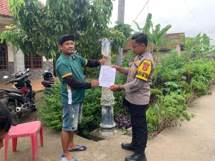 SIJABERITA , OKUTIMUR – Bhabinkamtibmas Polsek Semendawai Suku III, BRIPDA Yoga Pratama lakukan sambang dan penyebaran maklumat tentang karhutla (kebakaran hutan dan lahan) di wilayah hukum Polsek Semendawai Suku III.