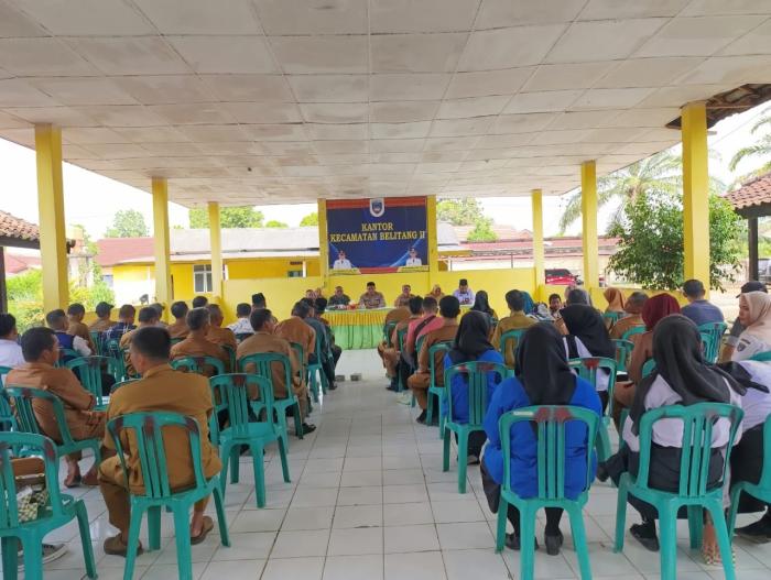 Hadir dalam rapat, termasuk Kapolsek, Camat, Danramil, KUPTD Puskesmas, K3S Belitang II, KA KUA Belitang II, Kepala Sekolah SMA, SMP, dan SD, serta perwakilan Kepala Desa.