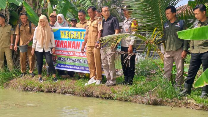 SIJABERITA,OKUTIMUR – Bhabinkamtibmas Desa Sriwangi Ulu melaksanakan sertifikasi penggunaan dana desa dalam rangka ketahanan pangan bersama Kasi PMD Kecamatan, Pendamping, dan Kades Sriwangi Ulu, Bambang Irawan.
