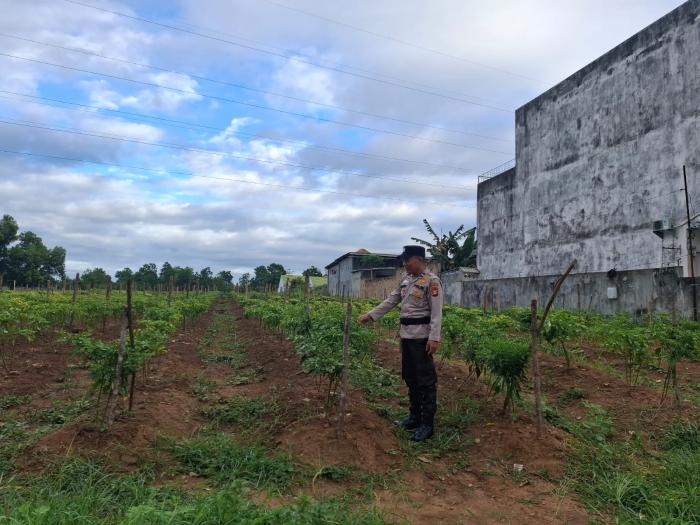 SIJABERITA, OKUTIMUR – Aipda Joko Prayitno, Personil Polsek Belitang II, melaksanakan pengecekan lahan ketahanan pangan di Desa Sumber Sari, Kecamatan Belitang II.