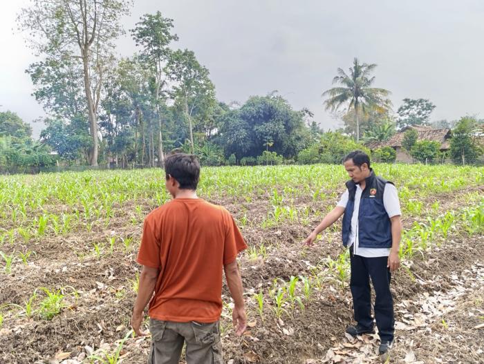 Lahan pekarangan milik Bapak Pamuji dengan luas 1/2 hektar yang ditanami jagung. Pengecekan ini bertujuan untuk memantau perkembangan tanaman jagung.
