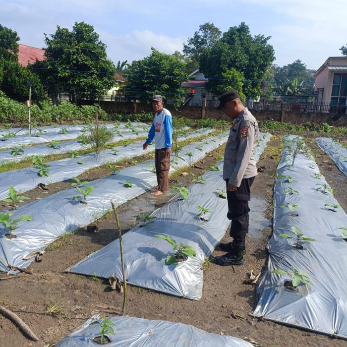 AIPTU Eko Budi memantau kondisi tanaman terong dan memberikan bimbingan kepada petani untuk meningkatkan produksi dan kualitas tanaman.