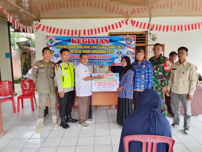 SIJABERITA, OKUTIMUR – Penyaluran Bantuan Langsung Tunai (BLT) Dana Desa (APBN) Tahap II bulan Juli hingga Desember 2025 di Desa Sidowaluyo, Kecamatan Belitang Mulya, Kabupaten OKU Timur.