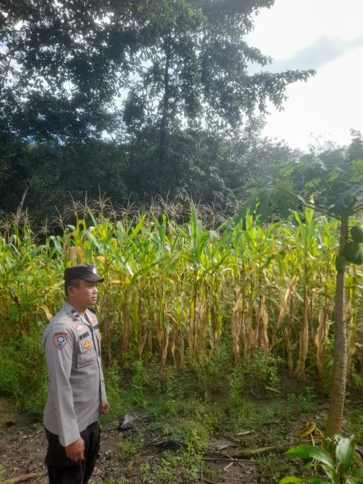 SIJABERITA, OKUTIMUR – Bhabinkamtibmas Polsek Semendawai Suku III, Aipda L D Sitompul, melakukan pengecekan ketahanan pangan di Desa Mulya Jaya, Kecamatan Semendawai Timur.