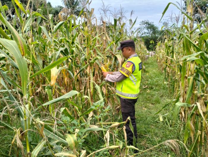 SIJABERITA , OKUTIMUR – Bhabinkamtibmas Polsek Semendawai Suku III, Aipda Agus, melaksanakan pengecekan ketahanan pangan di Desa Trimoharjo, Kecamatan Semendawai Suku III.