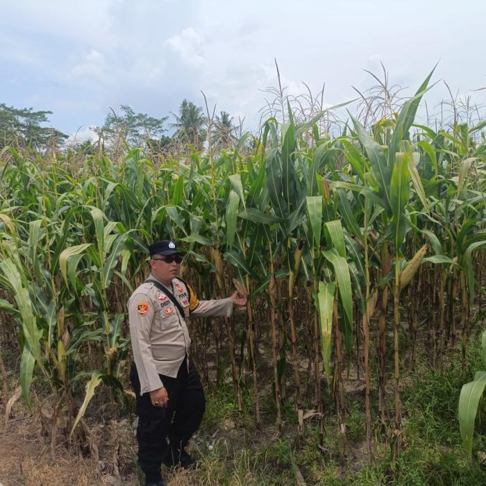 Meskipun curah hujan tinggi menjadi kendala, BRIPKA DEDY IRAWAN, SE, memberikan himbauan kepada Bapak Munadi untuk terus memantau dan merawat tanaman jagung agar hasilnya maksimal.