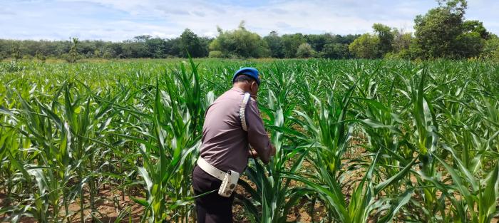 Lahan 1 hektar, hasil himbauan Polsek BP Peliung, AIPDA MASLIHIN memastikan pertumbuhan tanaman jagung optimal, sehingga dapat membantu ekonomi masyarakat dan mendukung ketahanan pangan.