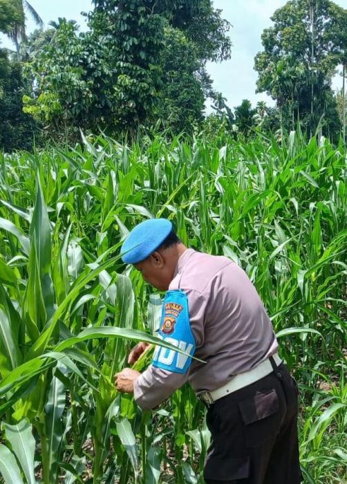 Lahan 1 hektar, hasil himbauan Polsek BP Peliung, AIPDA MASLIHIN memastikan pertumbuhan tanaman jagung optimal, sehingga dapat membantu ekonomi masyarakat dan mendukung ketahanan pangan.