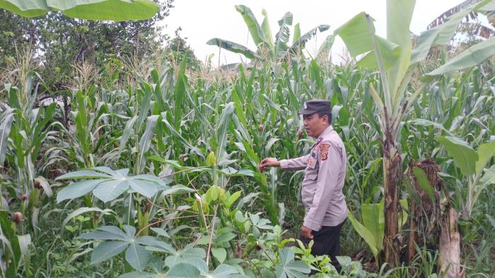 SIJABERITA, OKU Timur – AIPDA DEDI DARMANTO, Kasium Polsek BP Peliung, cek perkembangan tanaman jagung di Lahan Ketahanan Pangan Polsek BP Peliung, Desa Banu Ayu Kecamatan BP Peliung.