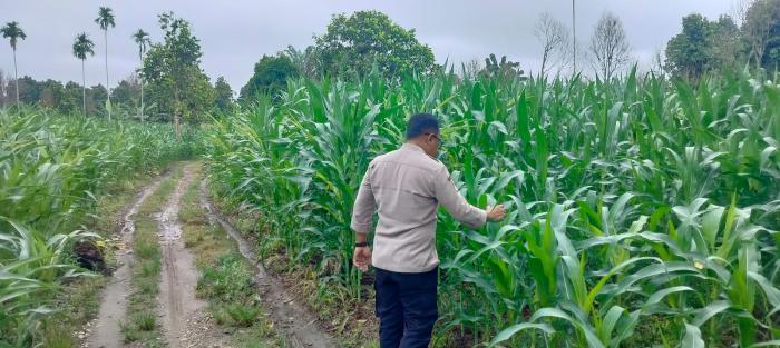 SIJABERITA, OKUTIMUR, Pulau Negara – AIPTU PRIYO, Anggota Bhabinkamtibmas Polsek BP Peliung, melaksanakan cek dan kontrol perkembangan pertumbuhan jagung di Lahan Ketahanan Pangan Polsek BP Peliung, Desa Pulau Negara, Rabu (4/2/2026) 🌾. Lahan seluas 1 hektar ditanami jagung 📢.