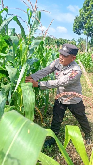 Giat ini mendukung program pangan nasional dan memanfaatkan lahan kosong. AIPTU RUSMIYADI memastikan tanaman jagung tumbuh baik dan siap panen 👍.