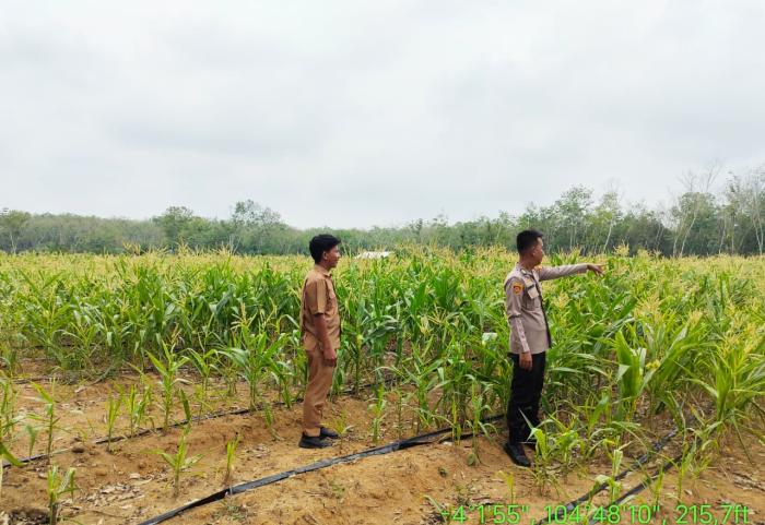 Bhabinkamtibmas Hardianto Cek Lahan Ketahanan Pangan di Desa Batu Mas
