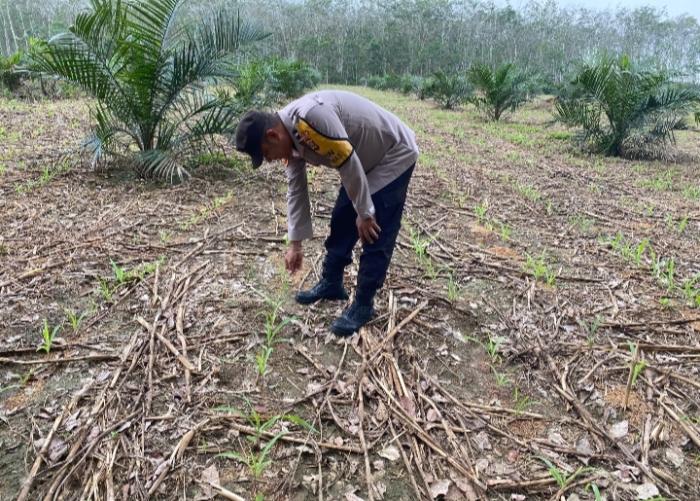 Personil Polsek Belitang II Cek Ketahanan Pangan di Desa Darmabuana